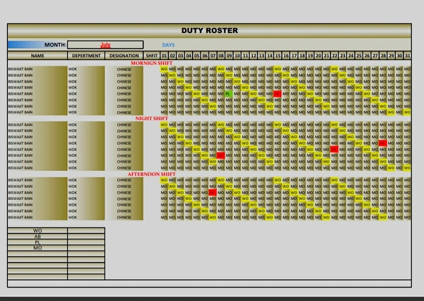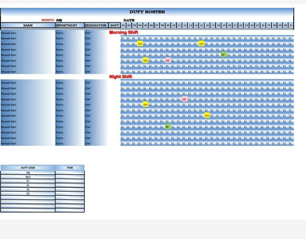 Duty Roster Format For (Mobile & PC)