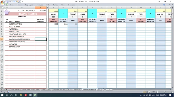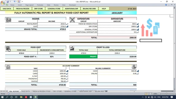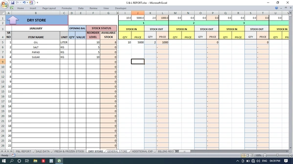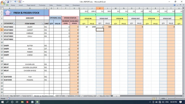 With the help of this format you will be abil to maintain your PROFILE & LOSS+ INVENTORY+ FOOD COSTING with ( FIXED PURCHASE PRICE.)