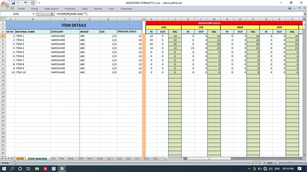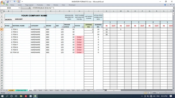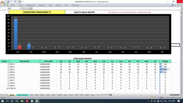 inventory management format for 1 year Fully automatic.
